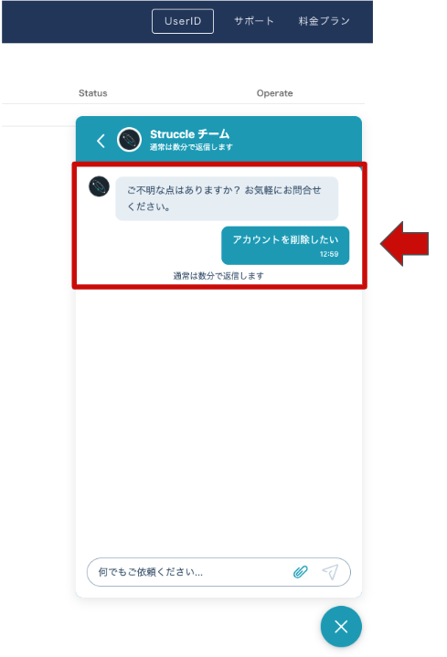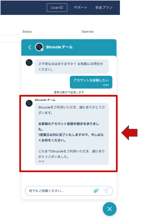 お客様の登録情報は Struccleチーム にて削除いたします。