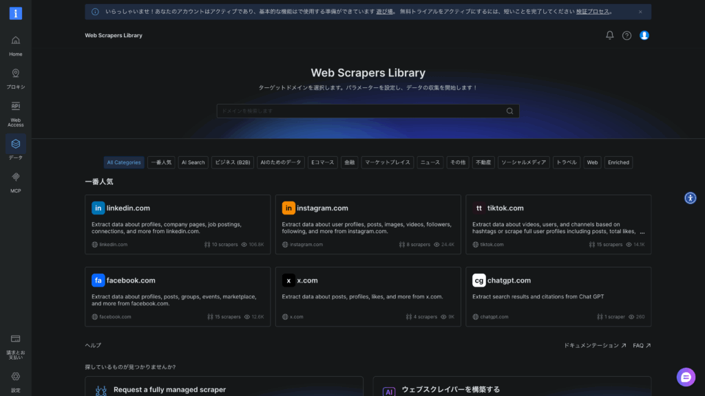 強力なプラットフォームを持つグローバルな企業が提供するWebスクレイピングツール。
