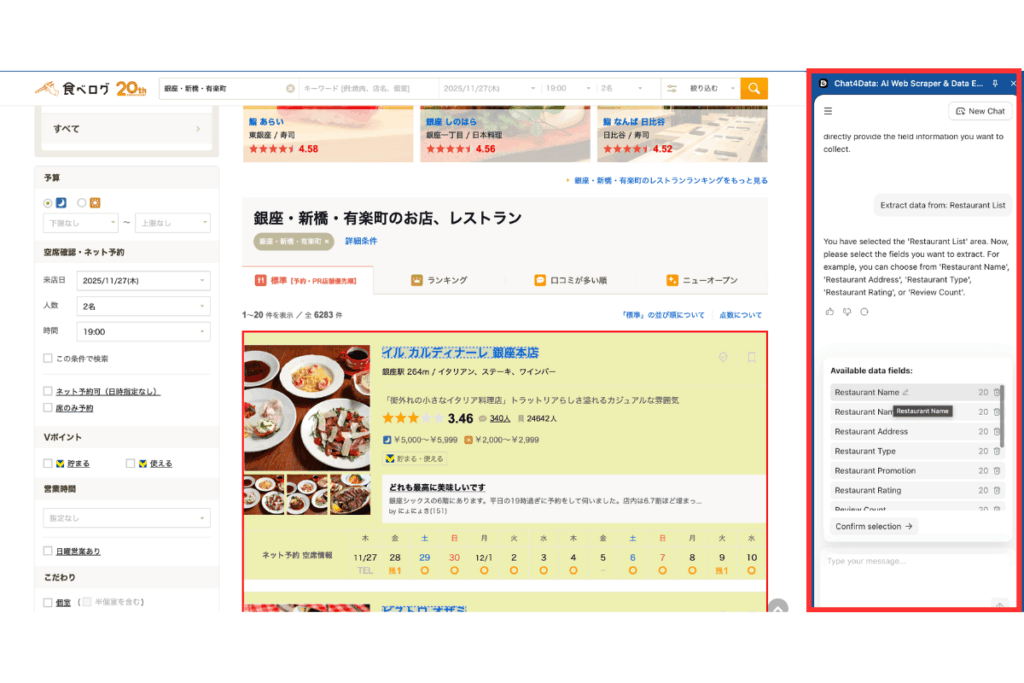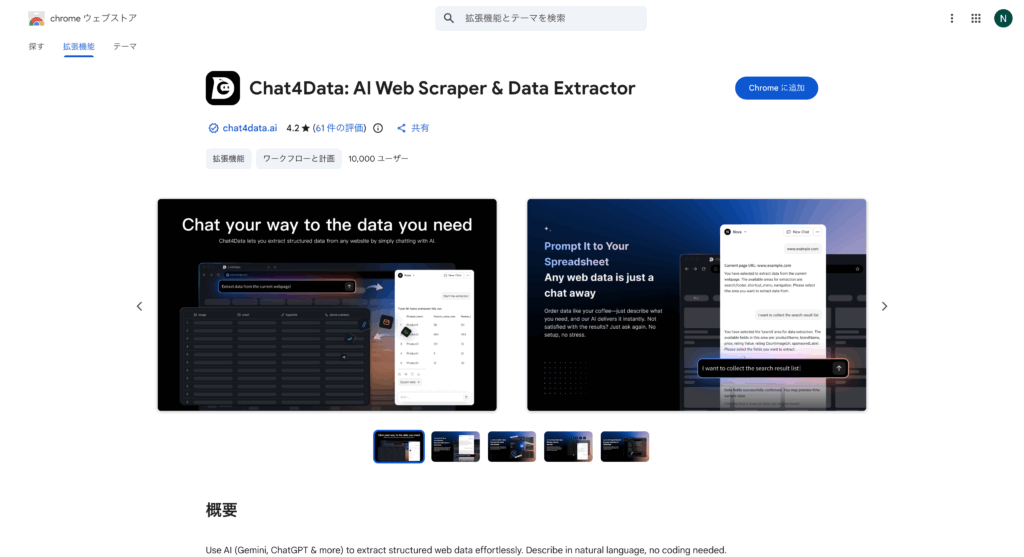 無料枠のある、AIとチャット形式で会話しながらスクレイピングを実行するサービスです。