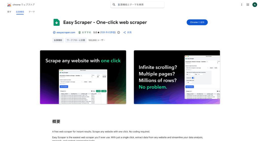 その一部が、今回紹介するChrome拡張機能のスクレイピングサービスです。