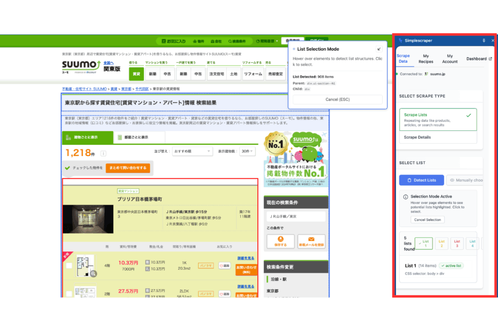 SUUMO、食べログ、ホットペッパービューティーなどの人気サイトをスクレイピングしてみた結果、個人的には「Chat4Data」と「Easy Scraper」が使い心地がよく、初心者の方でも簡単に利用できるのではないかと思いました。