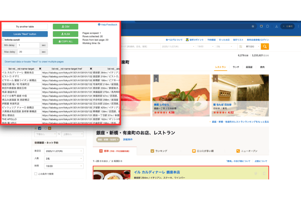 • 【食べログスクレイピング】Struccleで飲食店データを全件収集し、法人リスト作成