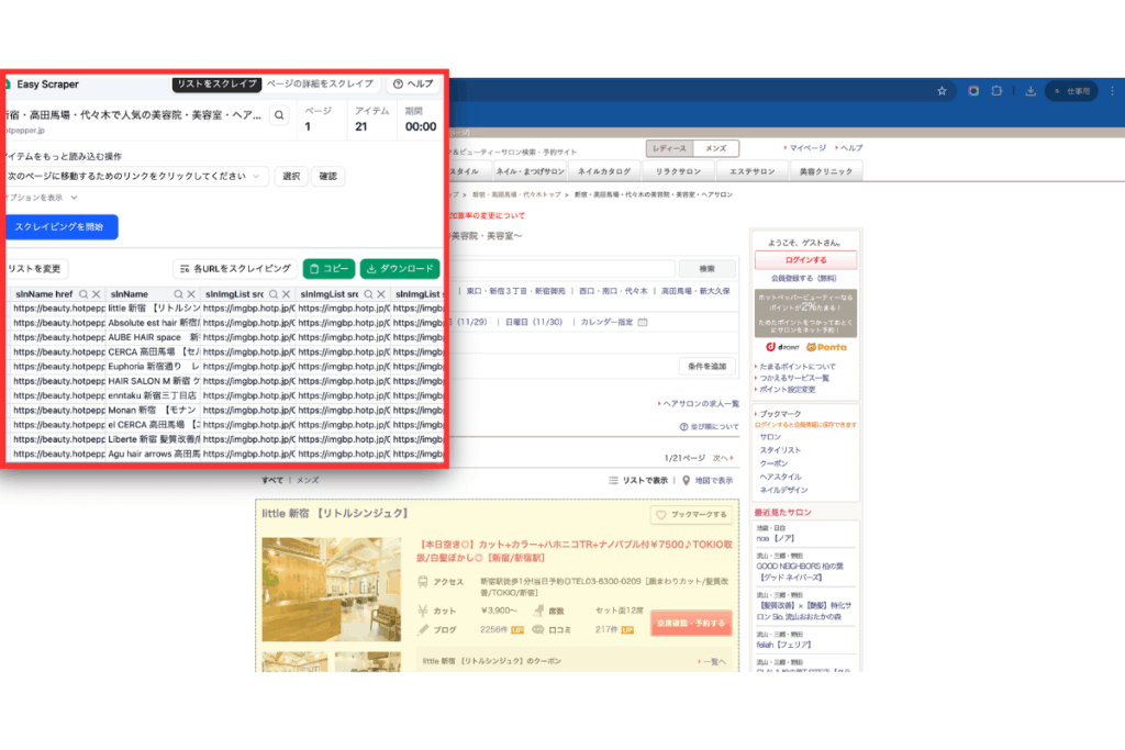 • 【ホットペッパービューティースクレイピング】Struccleでヘアサロンデータを全件収集