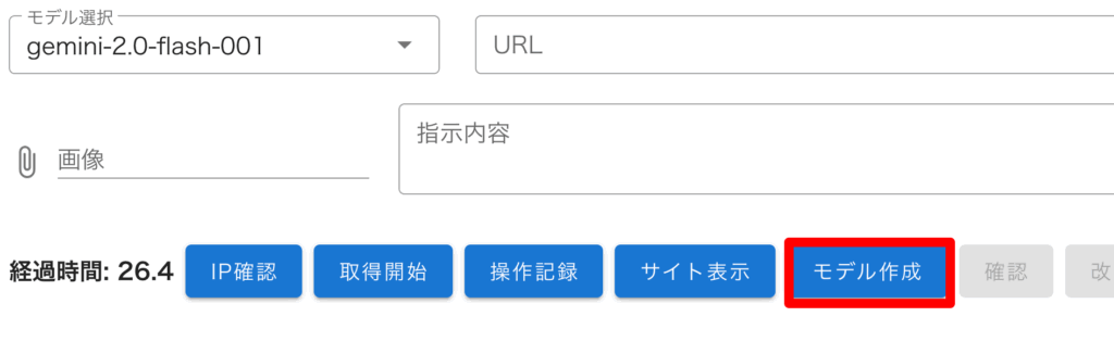 「取得開始」でスクレイピング実行後、「モデル作成」ボタンでデータを作成します。