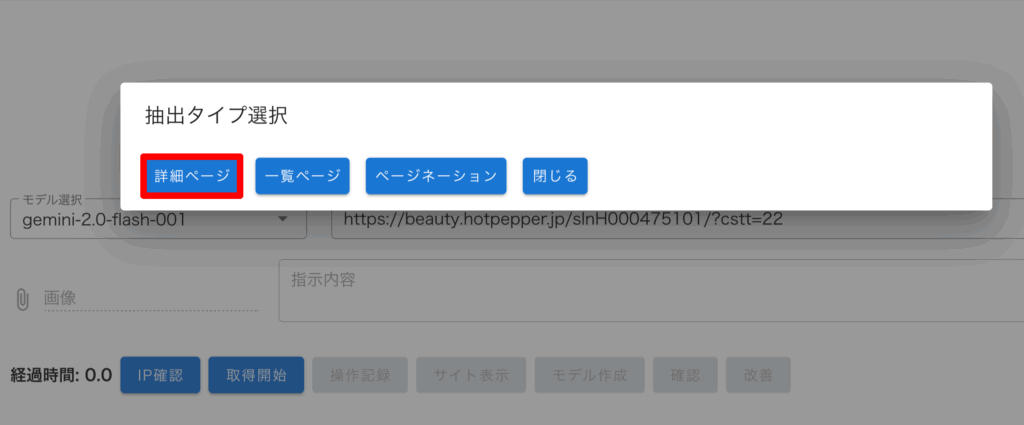 「詳細ページ」モードでは、対象のページからなるべく多くの情報をデータとして取得します。