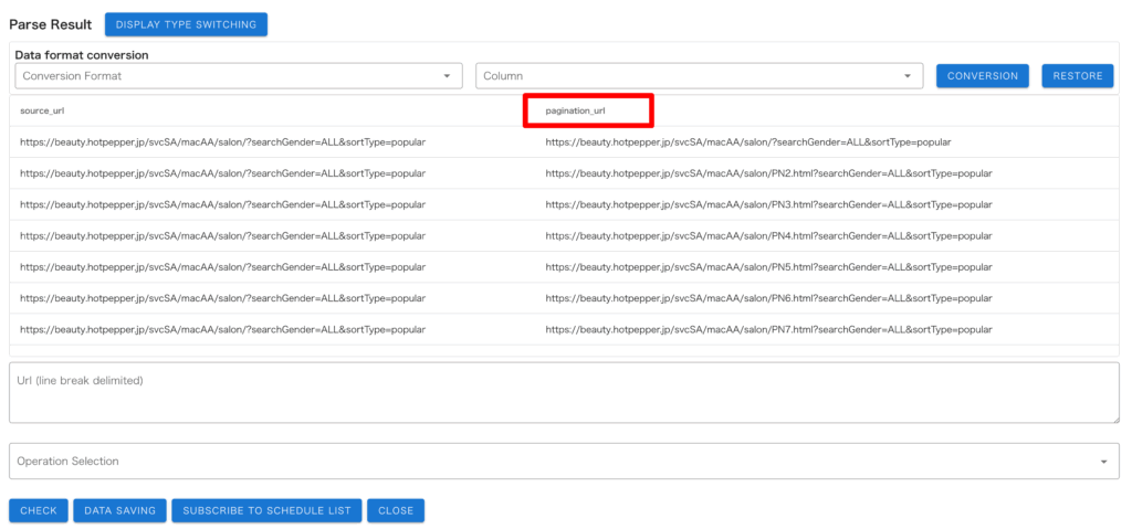 ページネーションとは、例えば商品検索サイトの検索結果画面の1ページ目、2ページ目・・・などの ページURL に該当します。