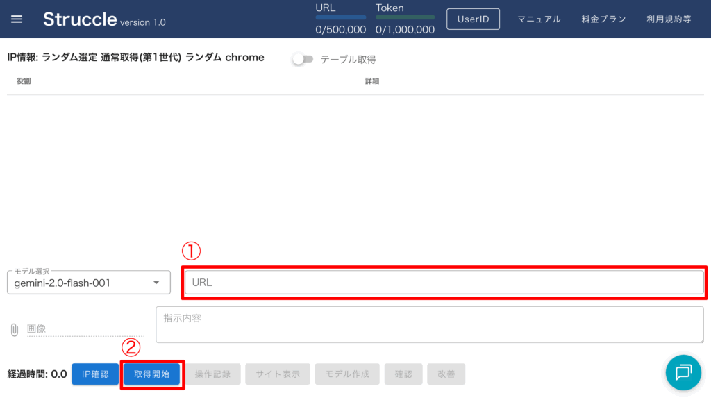 ① URL 入力
