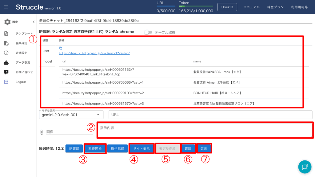② スクレイピングモデルの調整(AI への指示)