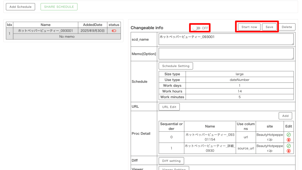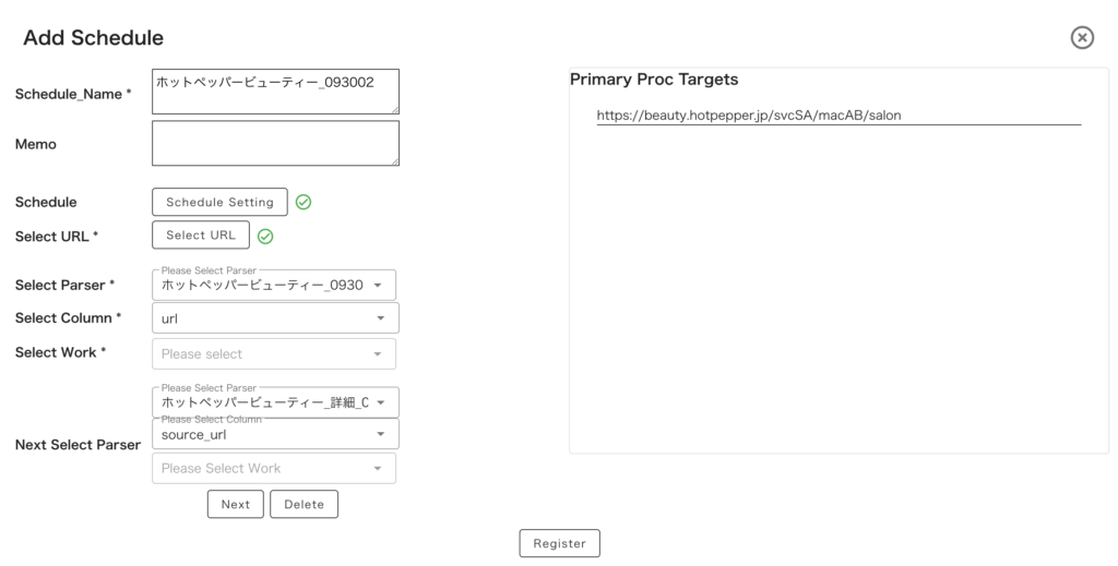 ③ Scheduler でタスク作成(一覧・詳細パーサーを紐付ける)