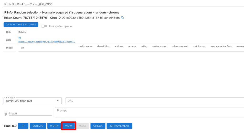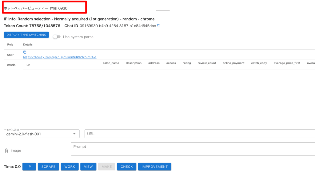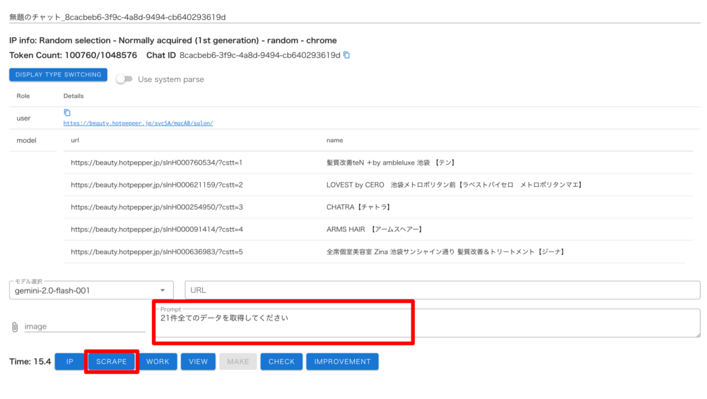 「Prompt」で AI に指示をすることによってスクレイピングモデルの修正をします。