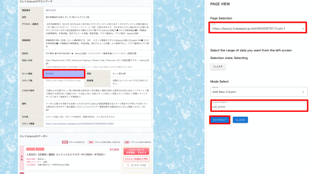 今回はホットペッパービューティーの店舗情報を、「詳細ページパーサー」と「一覧ページパーサー」を用いることでより多く取得する方法をお伝えします。