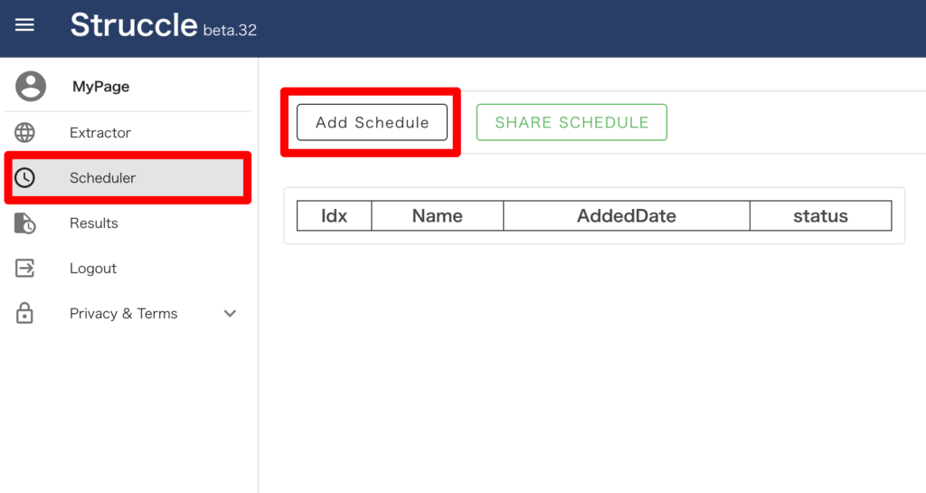 ・「Scheduler」メニューの「Add Schedule」で新しいタスクを作成