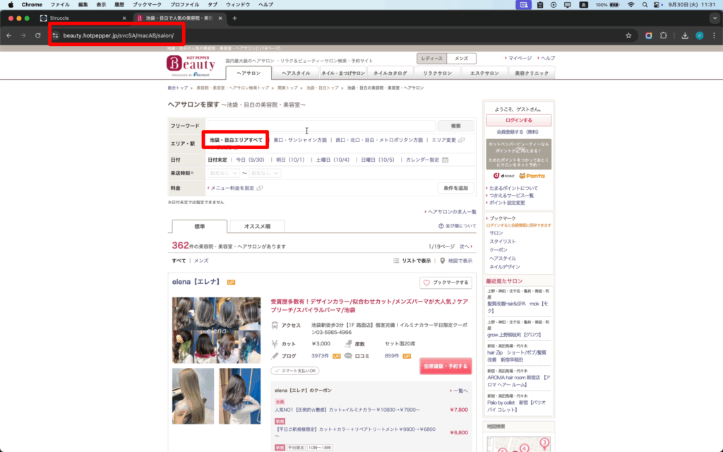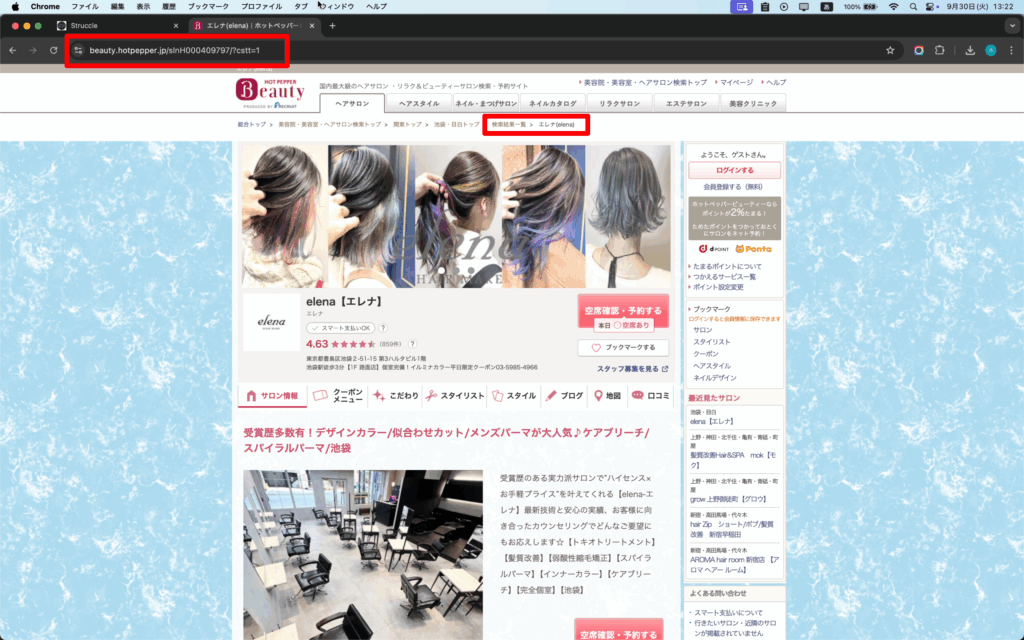 今回の対象ページ URL:https://beauty.hotpepper.jp/svcSA/macAB/salon