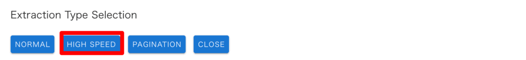 ・取得した URL を「URL」に入力して「SCRAPE」を押し、「HIGH SPEED」モードを選択
