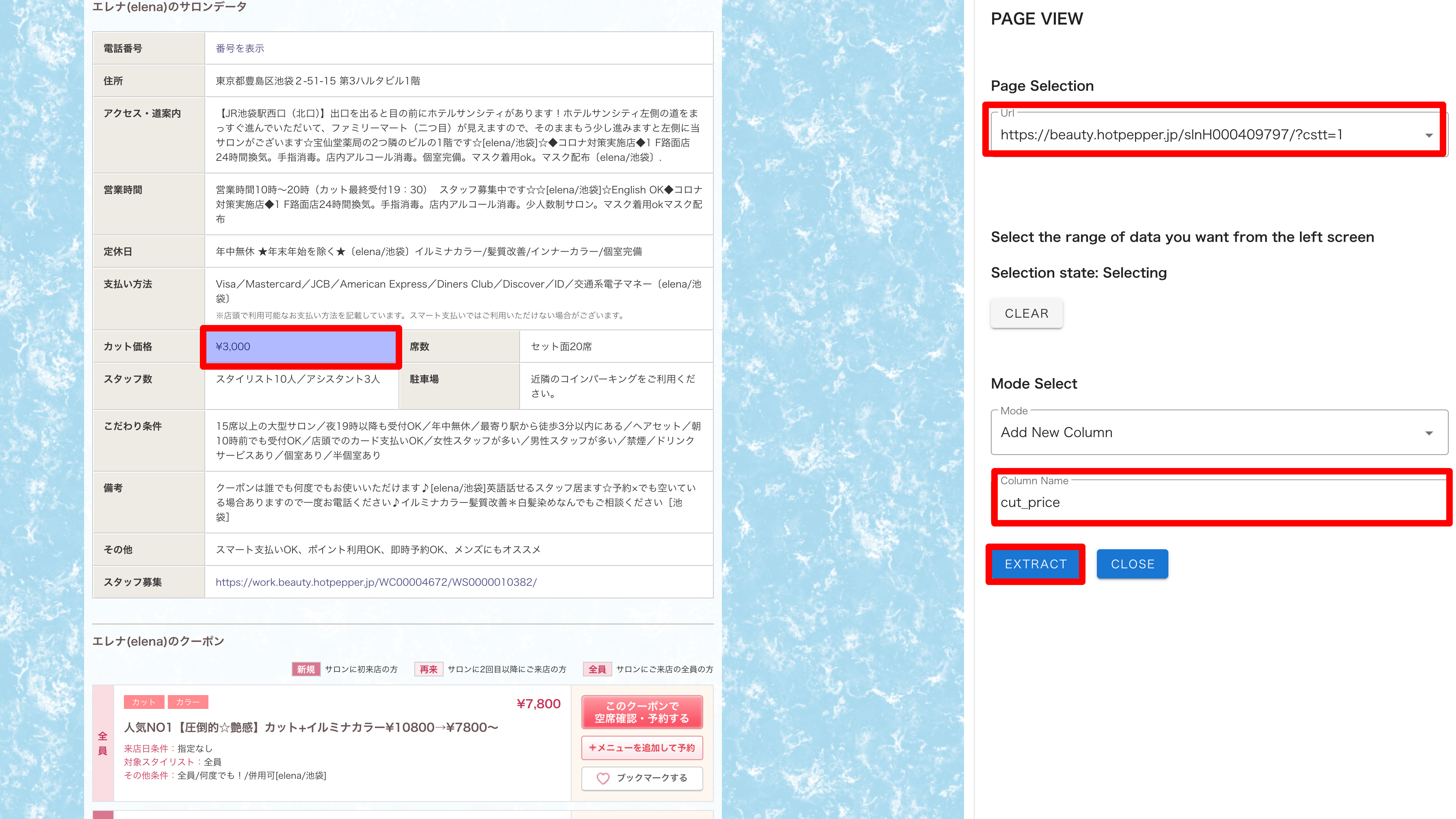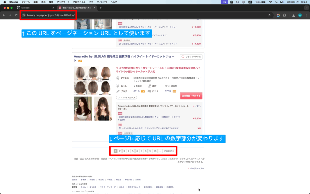 ホットペッパービューティーの店舗ページを、大量に情報取得する方法をお伝えします。