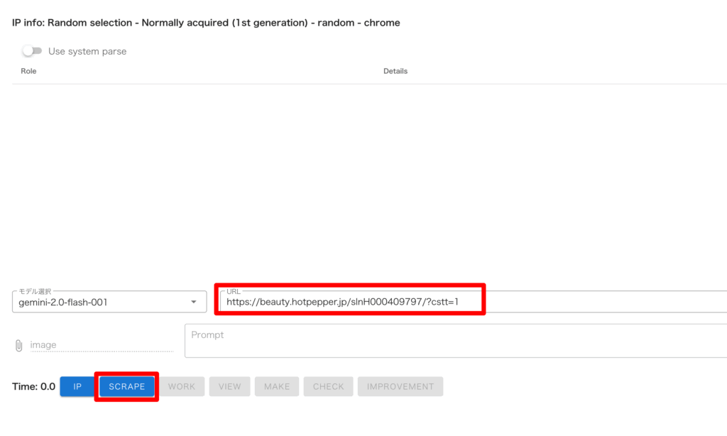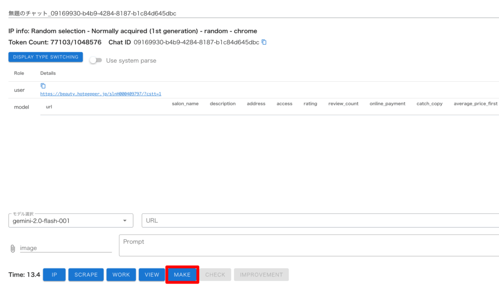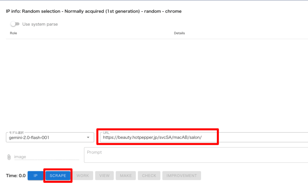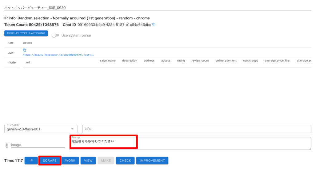 「Prompt」で AI に指示をすることによってスクレイピングモデルの修正をします。