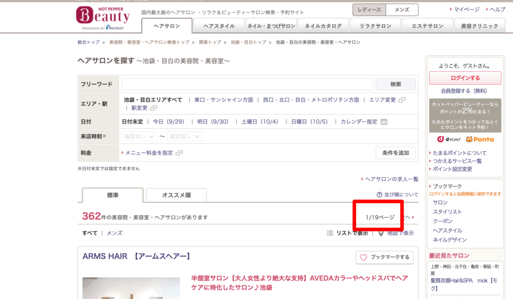 1ページ目:https://beauty.hotpepper.jp/svcSA/macAB/salon/