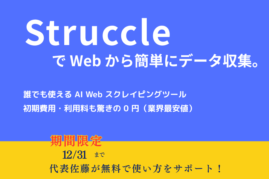 Struccleは日本発のスクレイピングツールです。 当社では、BigQueryを使用可能なデータのプロである専任担当がいつでも対応いたします。 メールのみならず、ビデオでのサポートも実施しています。