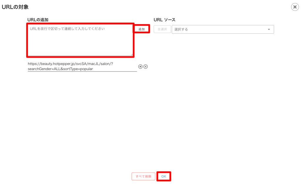 2:「URLの追加」にてURLを入力し、「追加」を押下。