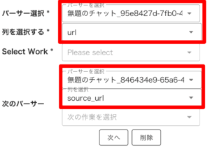 4:次のパーサーの「列を選択」にて「source_url」を選択。