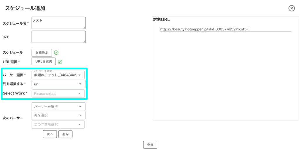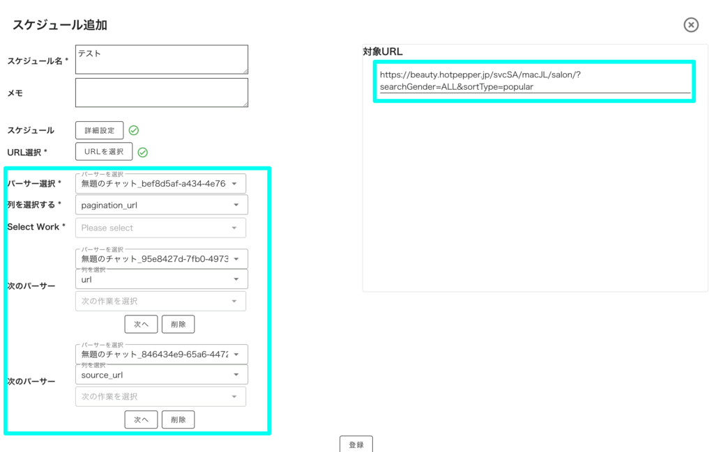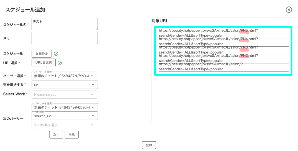 設定が完了したら「登録」を押下してスケジュール設定を確定します。