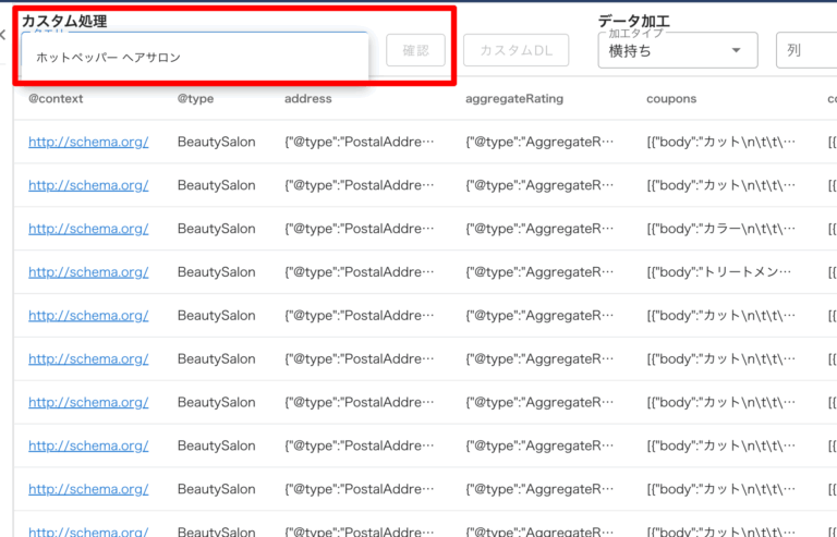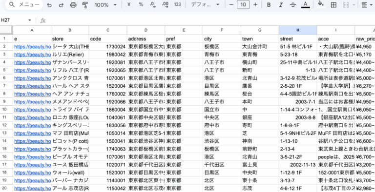 Struccle の他の機能も使えば、下のデータサンプルのような大量データもすぐに取得できます。