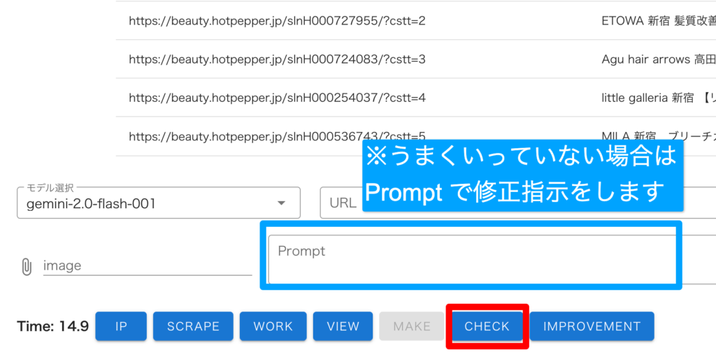 ※うまくいかない場合は、「再度実行してください」などスクレイピングツールへの指示を「Prompt」に入力します