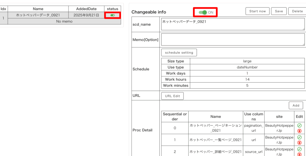 status が ON の時はどういう状態ですか? 2025 10/01 FAQ 2025年10月1日 関連画面:Scheduler ON の場合は、タスクが有効になっています。タスクが有効の場合、自動定期取得が実行されます。タスクを無効にしたい場合は OFF にしてください。 人気記事 BigQueryの無料枠を活用しよう!制限と注意点、活用方法を解説 BigQueryでエラー解決!よくあるエラーと対処法 BigQueryのレベル別学習リソースまとめ!初心者から上級者まで役立つ情報源 【SUUMOスクレイピング】Struccleで物件データを全件収集 BigQueryとAPI連携で外部サービスとデータ連携!可能性を広げる活用方法 FAQ Struccle スクレイピング よかったらシェアしてね! URLをコピーしました! URLをコピーしました!